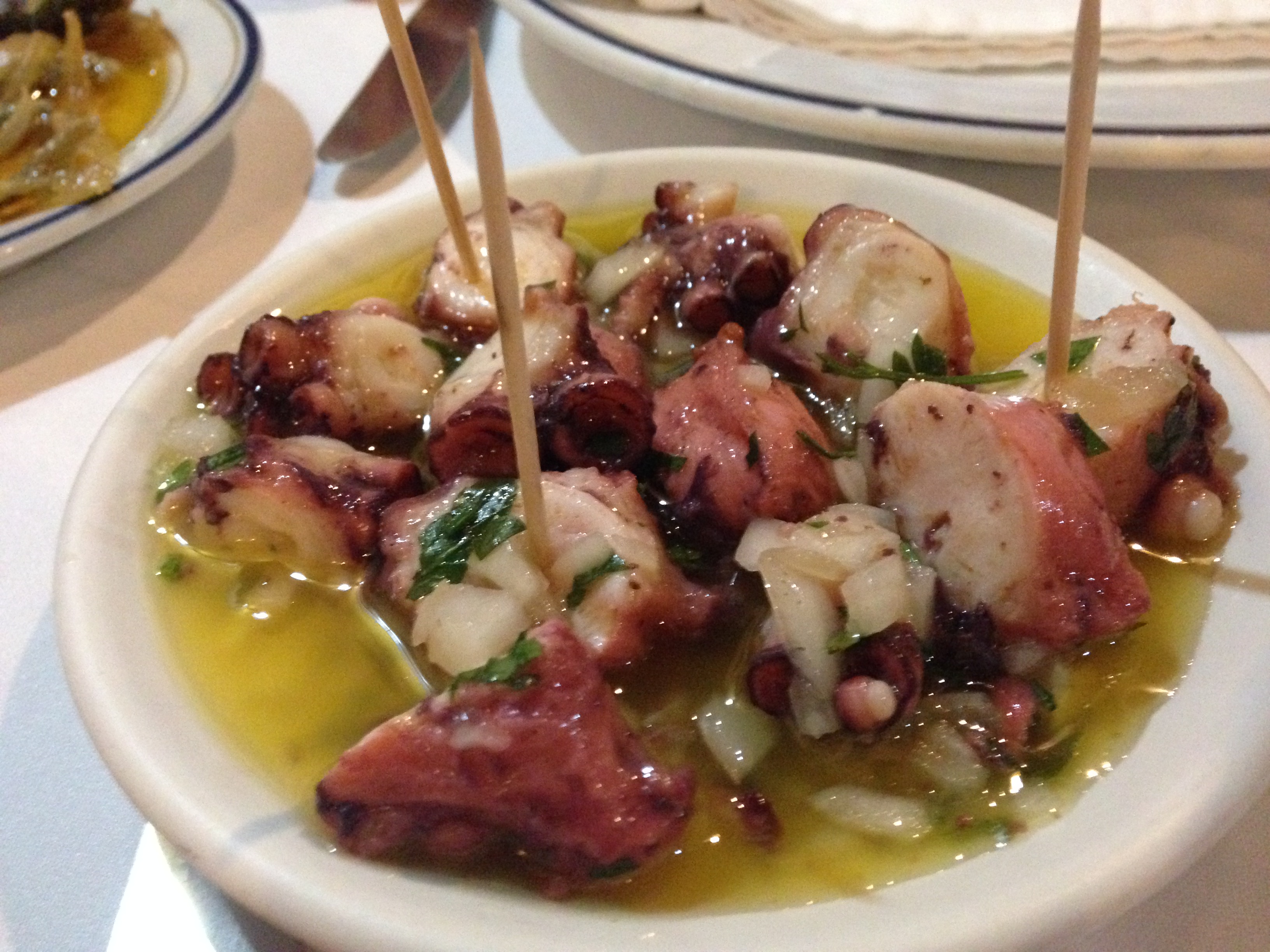 Later that evening, we enjoyed a lovely dinner at Grade A, a family run restaurant near the waterfront.  The food was simply prepared and absolutely delicious.  We were offered a delicious and delicate octopus salad and a plate of lightly battered and deep fried sardines drizzled in oil as appetizers which we devoured almost immediately.  I then ordered the prawns in lemon butter and paprika served with lemon wedges, while Emma ordered the pan seared lamb and Andrew had the oven roasted kid.  Dessert was a dream, we each ordered something different and shared, as you do!  I had a slice of key lime pie – divine!  Andrew ordered another version of the layered mocha cream cake he’d had in Lisbon and Emma ordered an oven roasted apple with cinnamon – YUM!